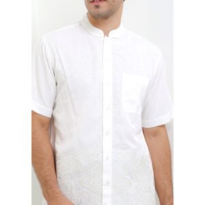 – Koko lengan pendek dengan detail bordir untuk tampilan modern classic