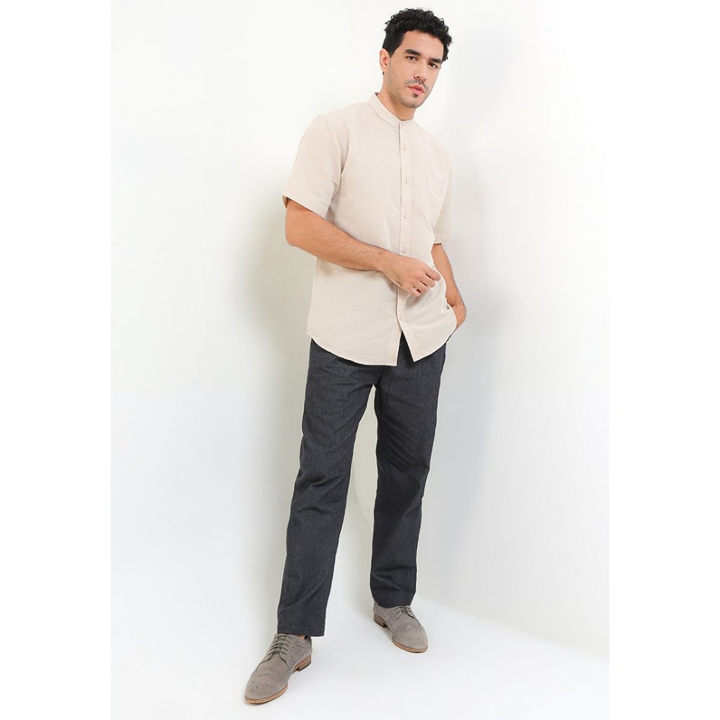 – Celana panjang bernuansa dark tone untuk gaya modern casual