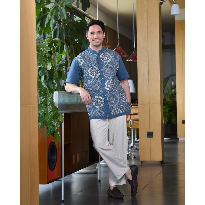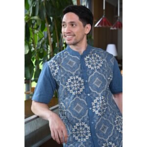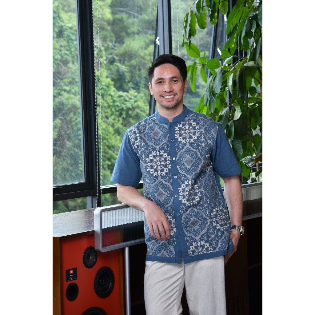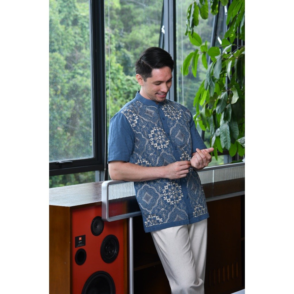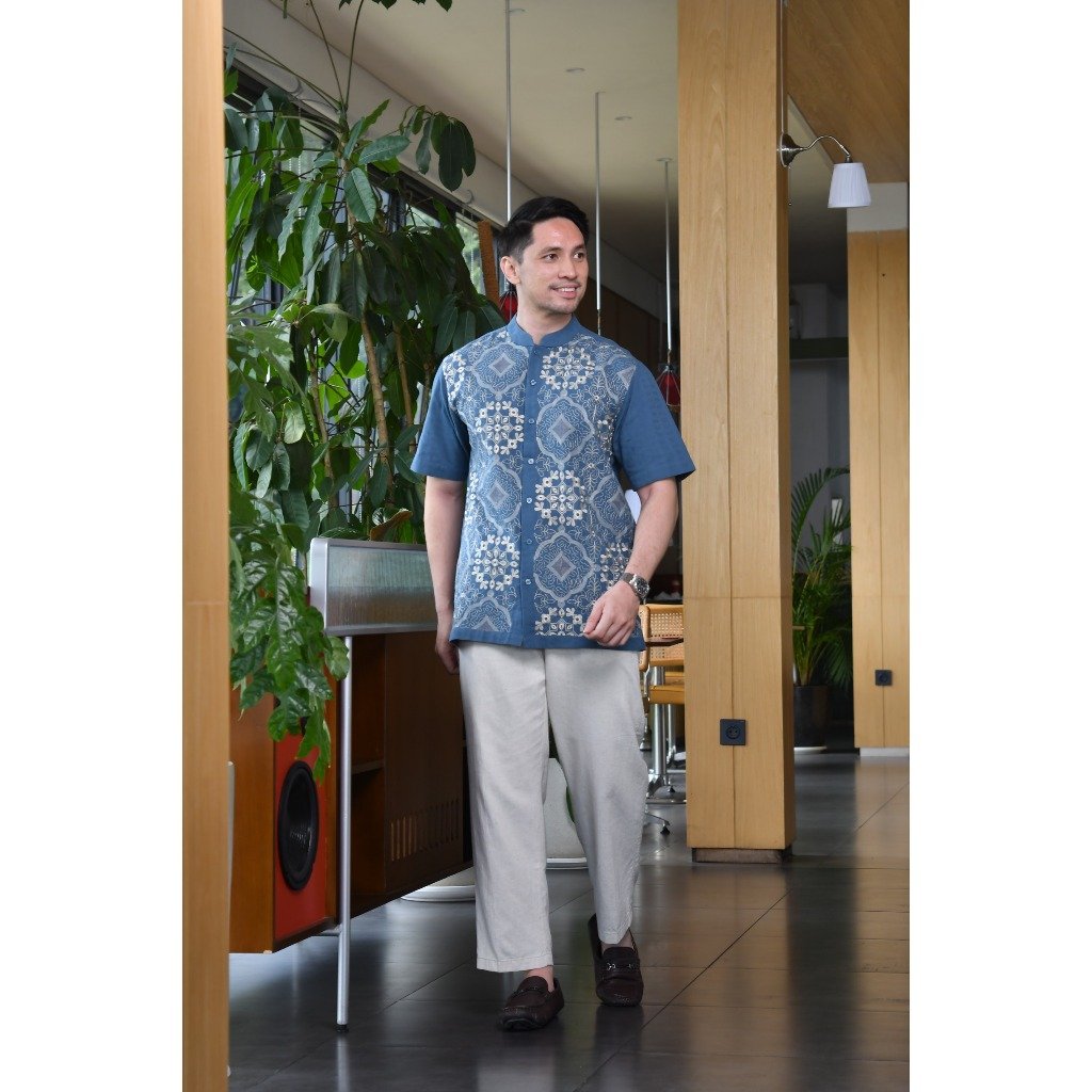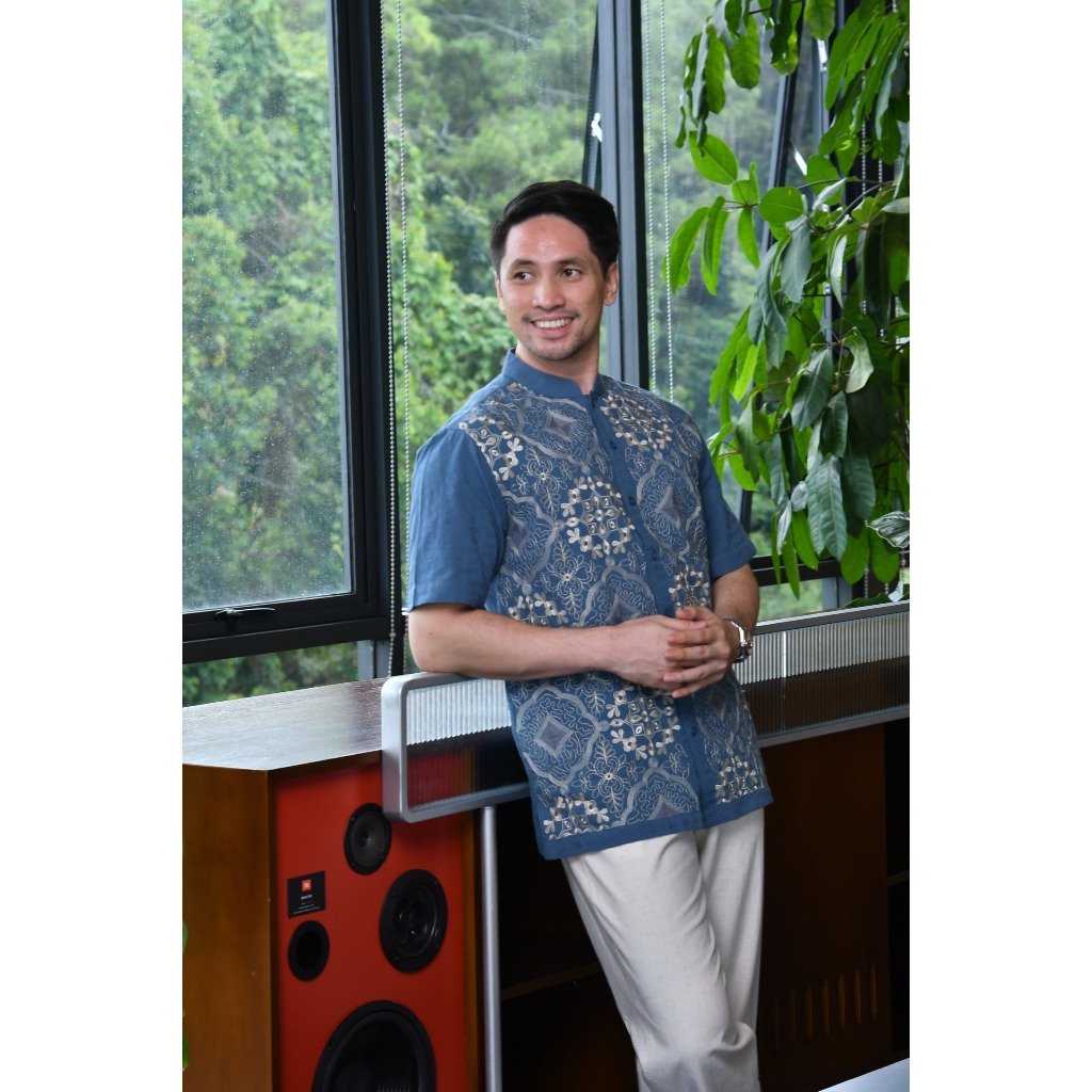 – Baju koko lengan pendek desain classic dengan detail graphic embroidery