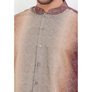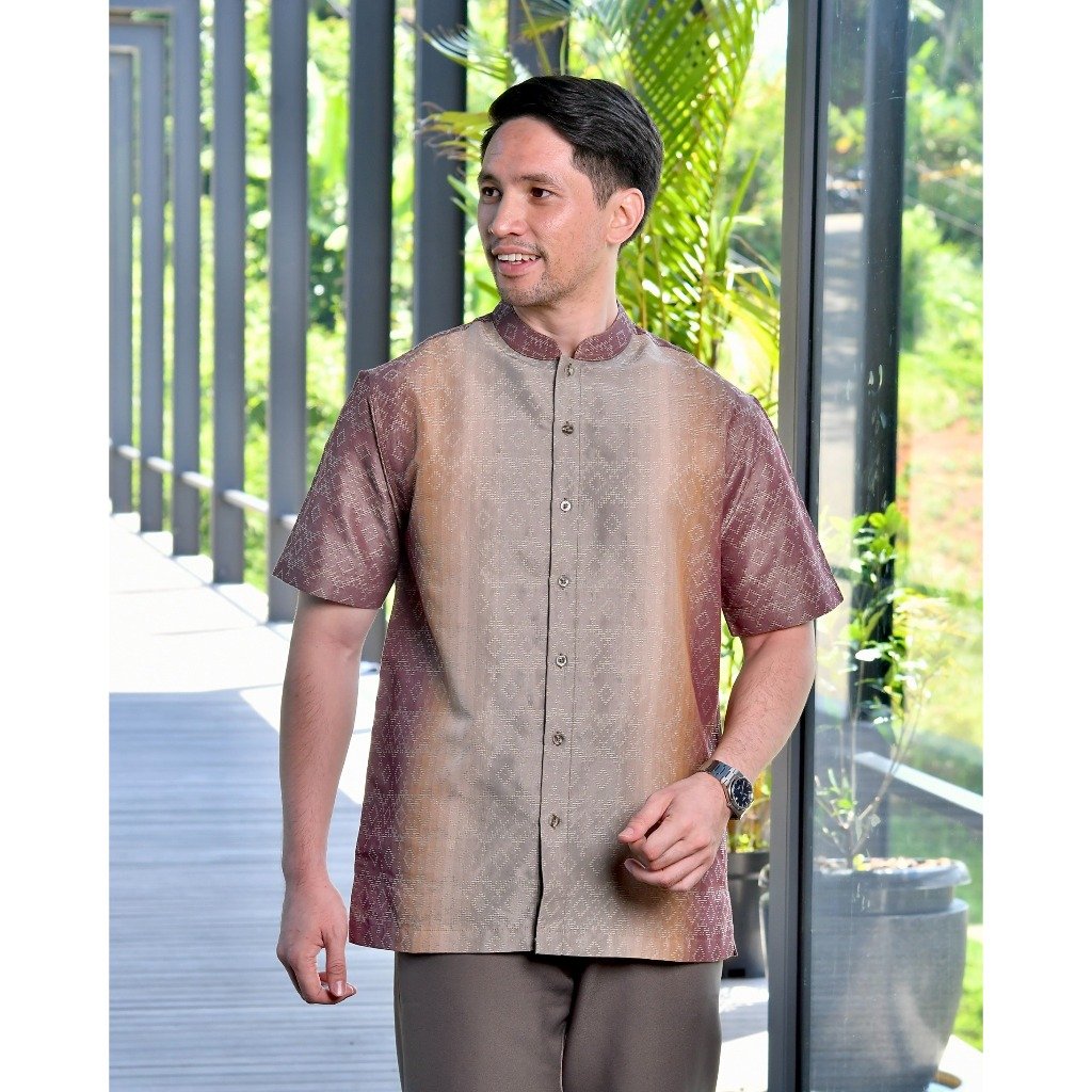 – Baju koko lengan pendek dengan motif dobby untuk modern classic look