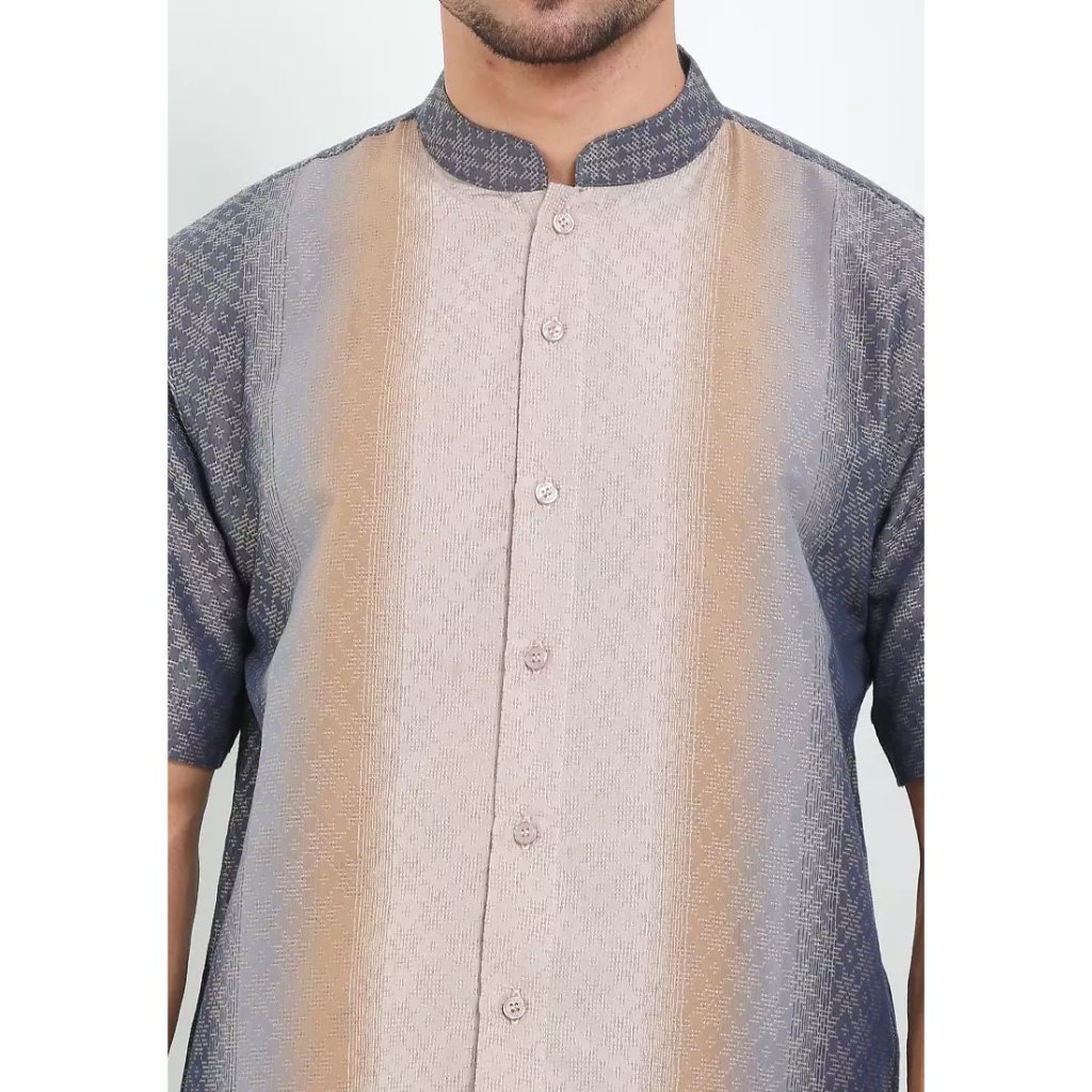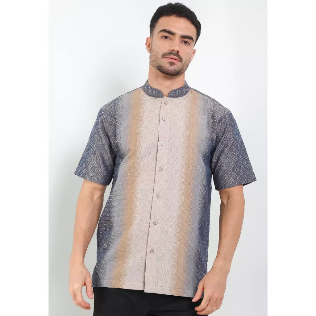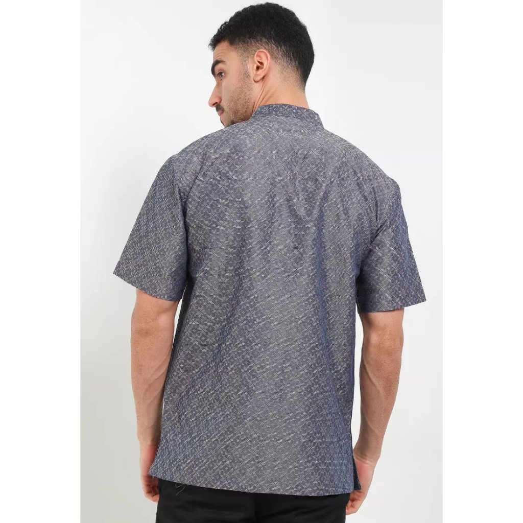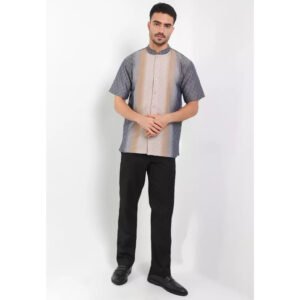 – Baju koko lengan pendek dengan motif dobby untuk modern classic look