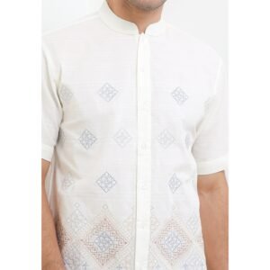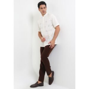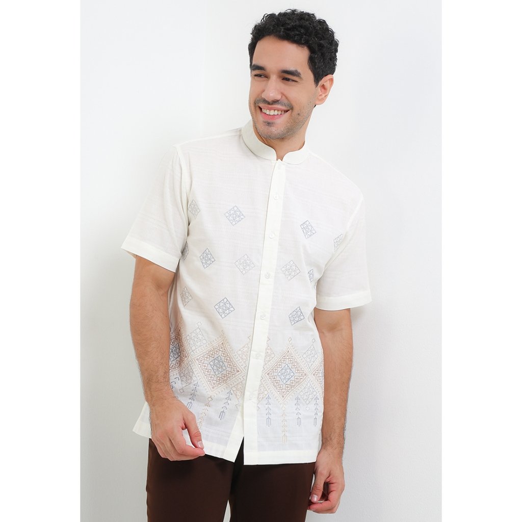 – Koko lengan pendek dengan detail bordir bergaya modest classic