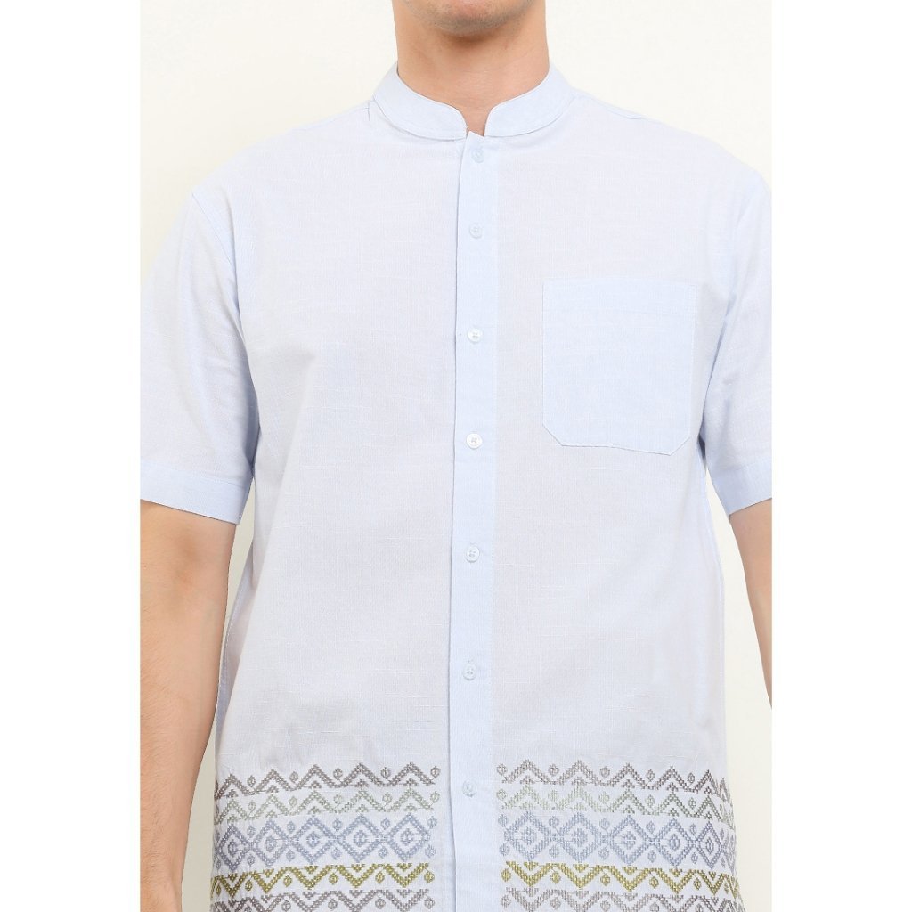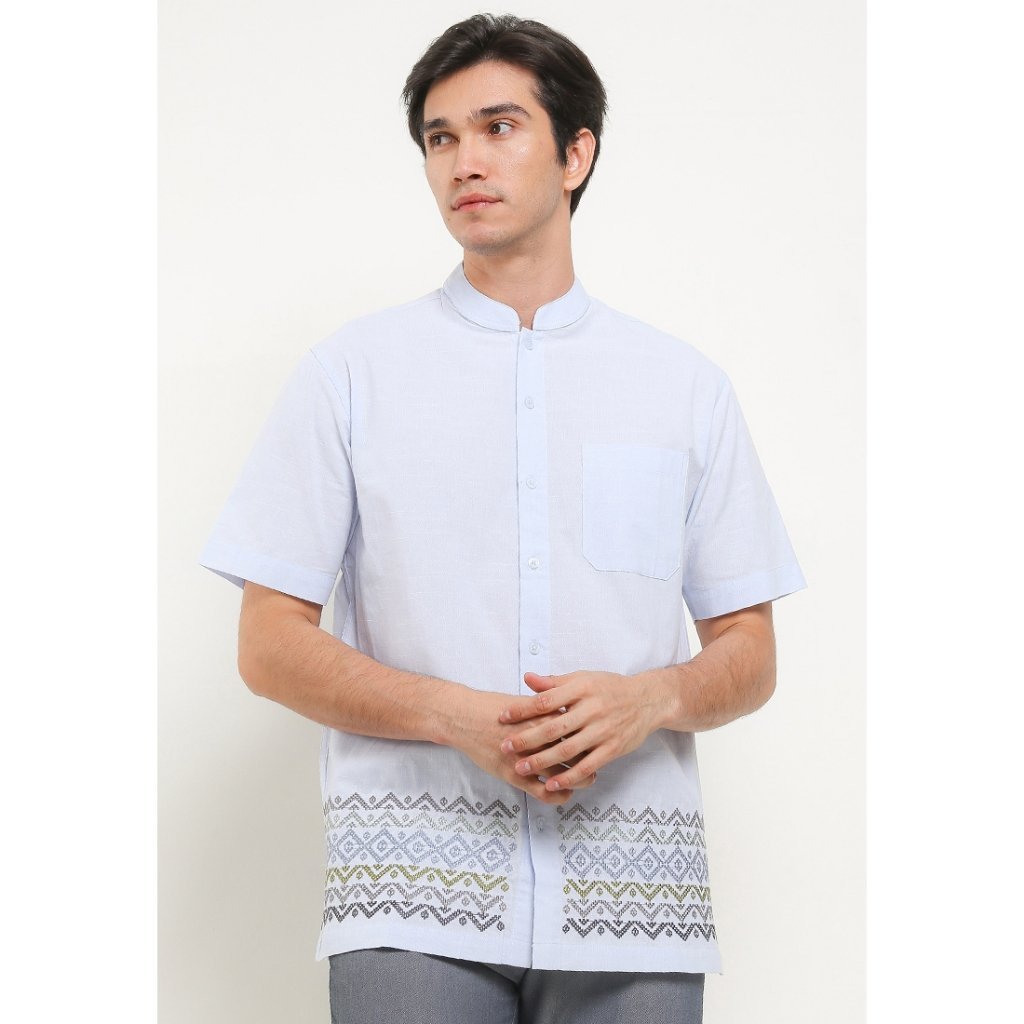 – Baju koko dengan aksen motif bordir untuk simple modest look
