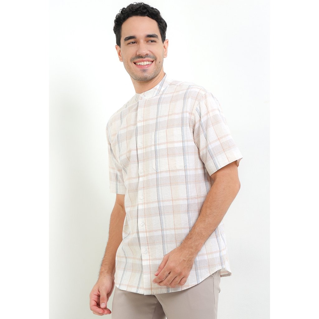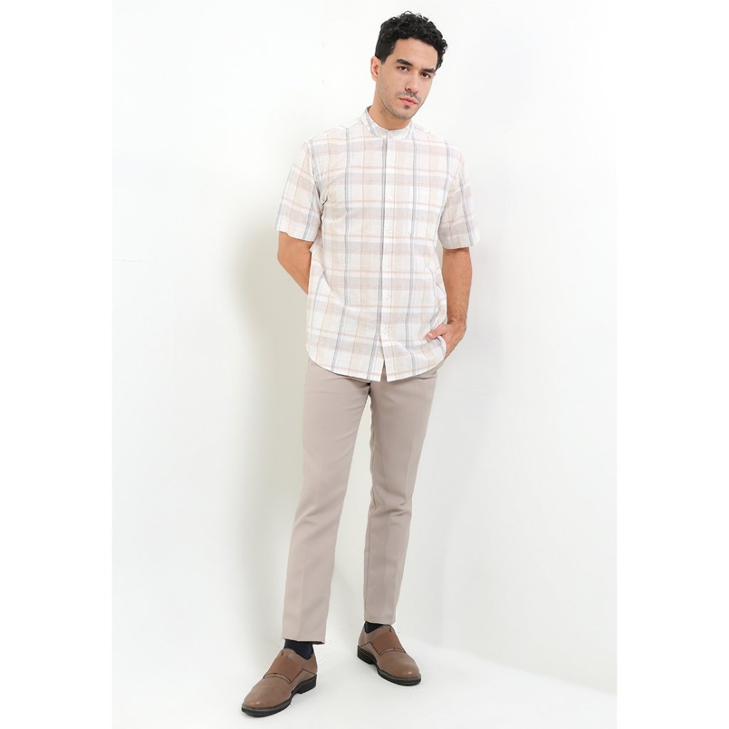 – Kemeja koko detail checked pattern dengan desain modern classic