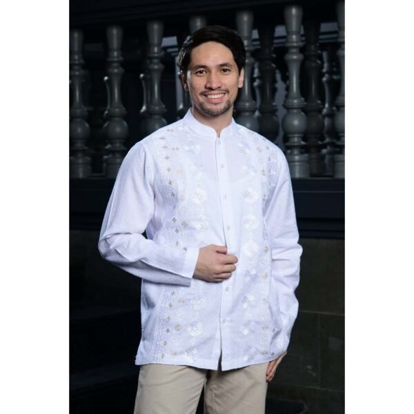 – Baju koko detail motif bordir dengan nuansa monokrom