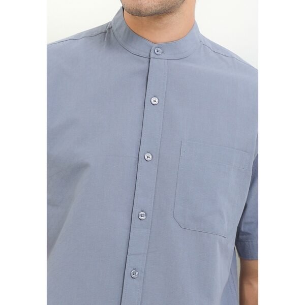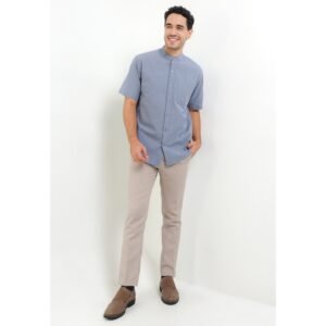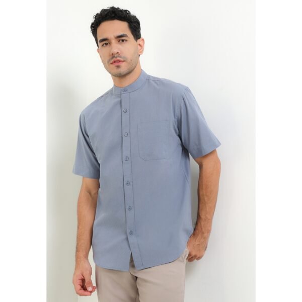 – Kemeja koko polos motif dobby dengan desain timeless basic