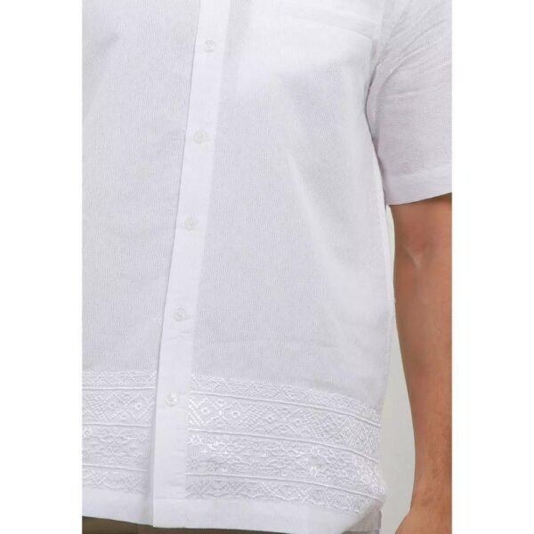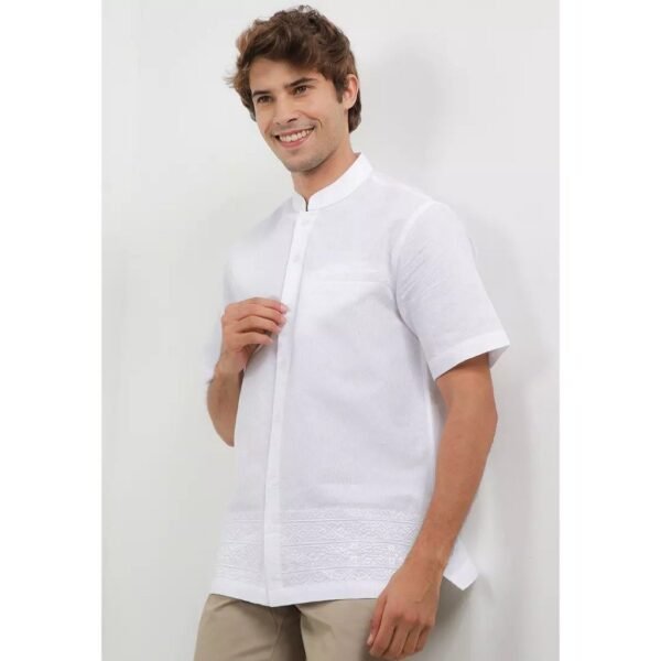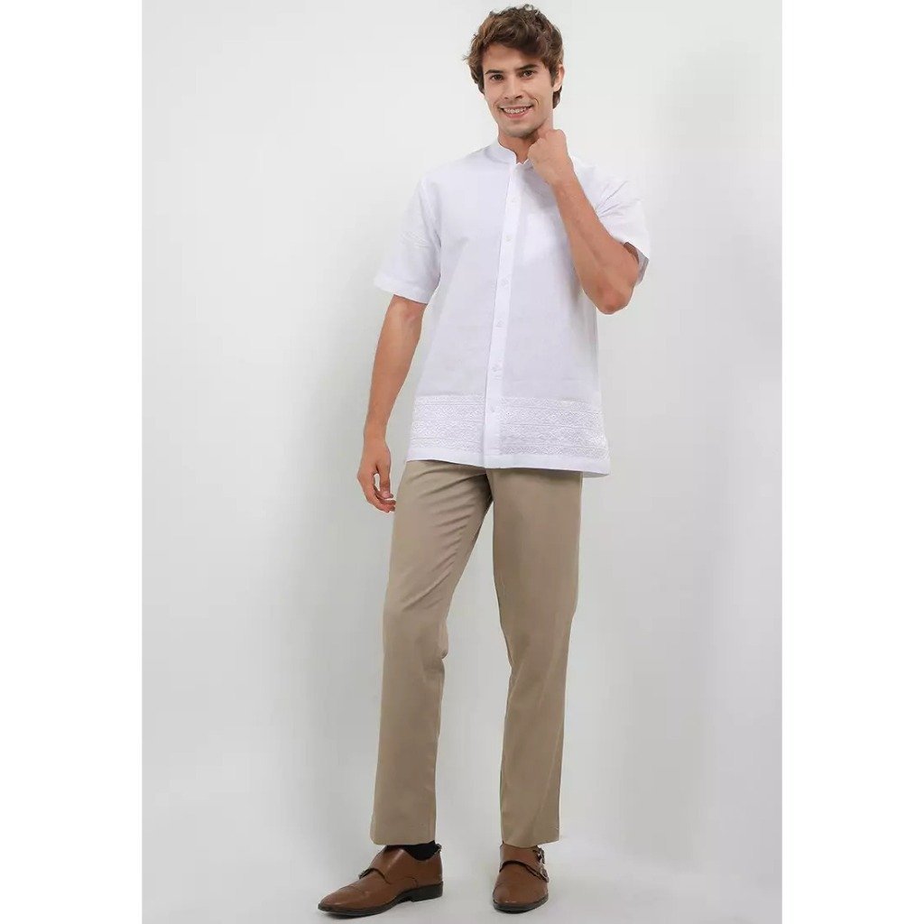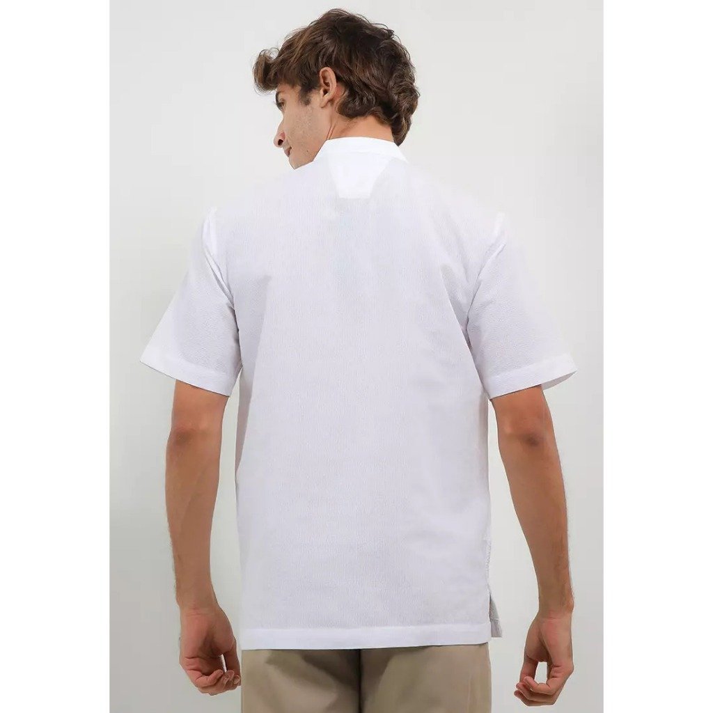 – Koko lengan pendek bernuansa monokrom dengan detail bordir senada