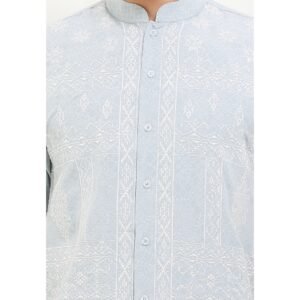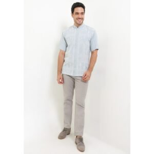 – Baju koko lengan pendek bernuansa light tone dengan detail bordir modern classic