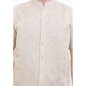 – Koko lengan pendek dengan detail bordir untuk tampilan modest ethnic