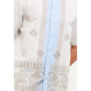 – Koko desain colorblock dengan detail bordir untuk tampilan modern classic