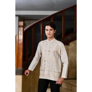 – Koko lengan panjang dengan detail bordir untuk tampilan modest ethnic