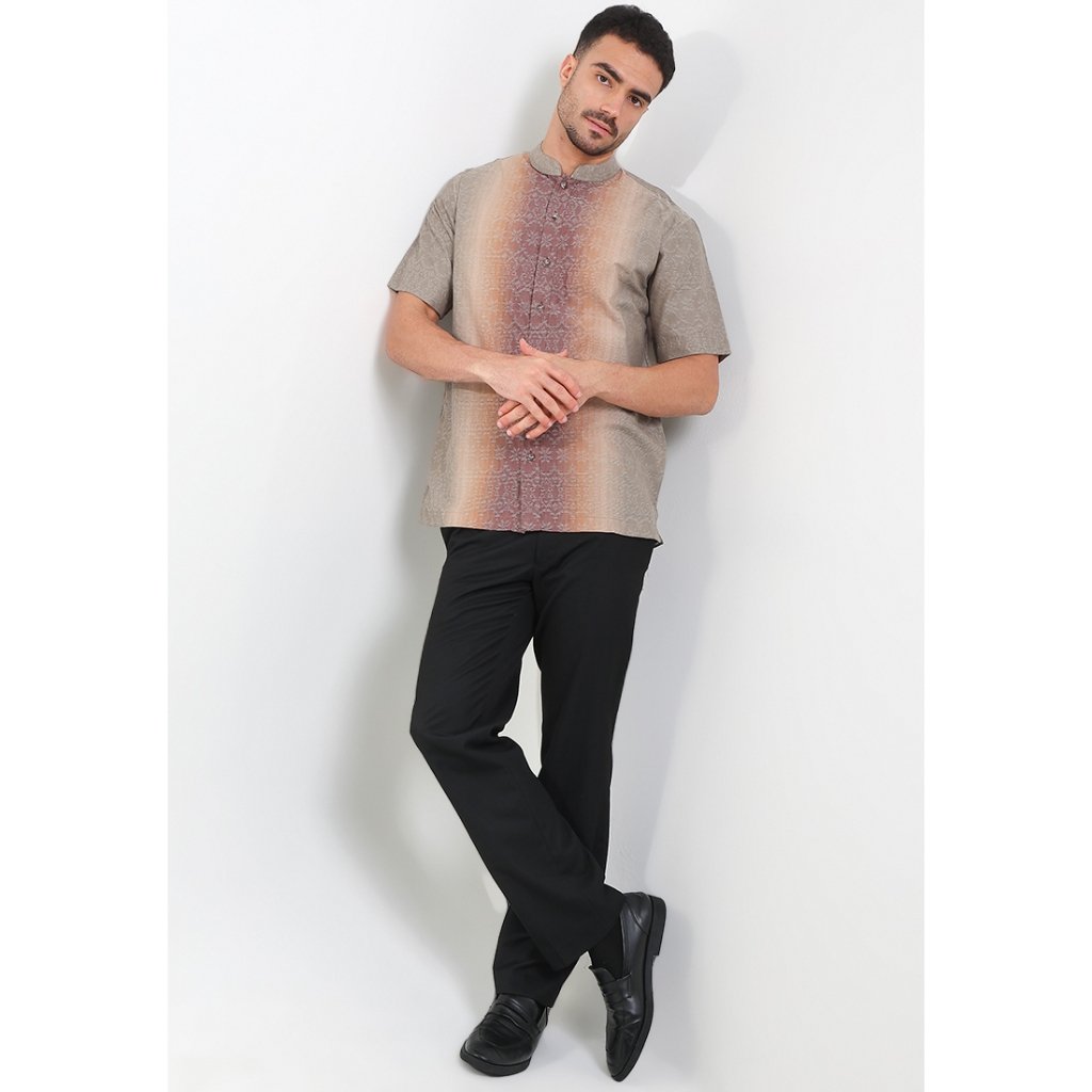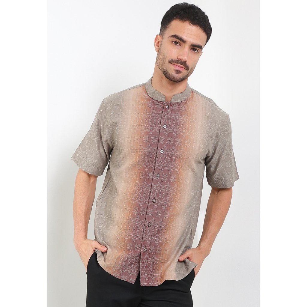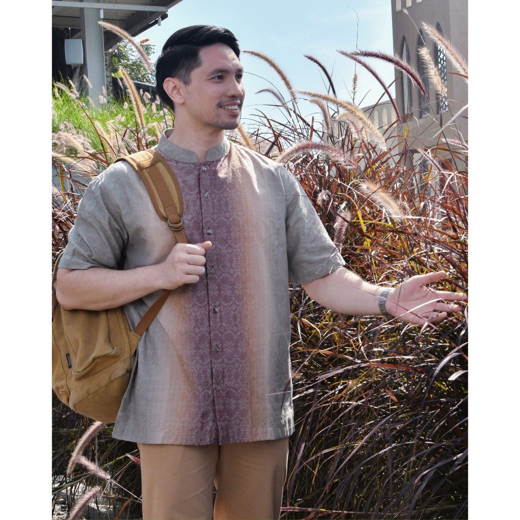 – Koko lengan pendek motif tenun desain modern ethnic untuk tampilan classy modest
