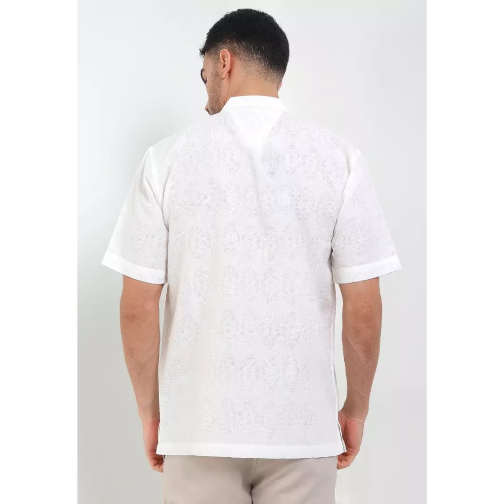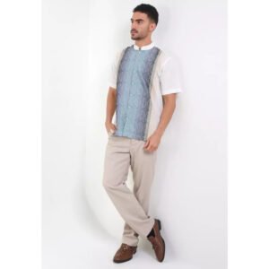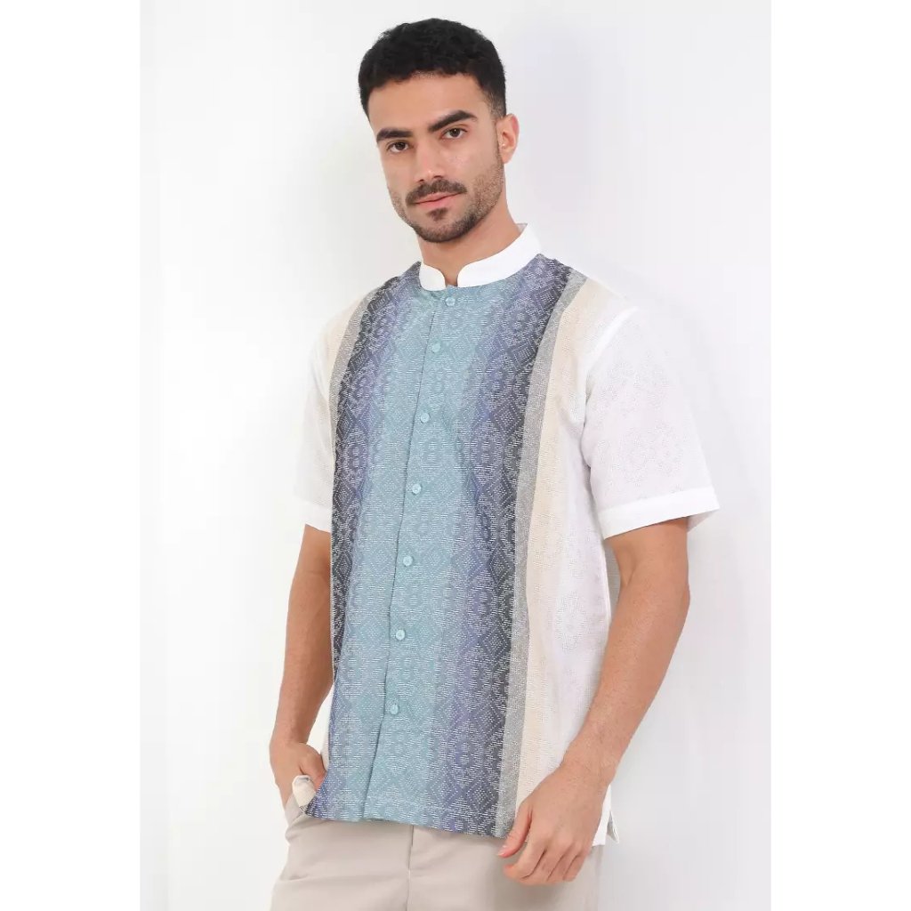 – Koko lengan pendek bergaya modern ethnic dengan detail motif tenun