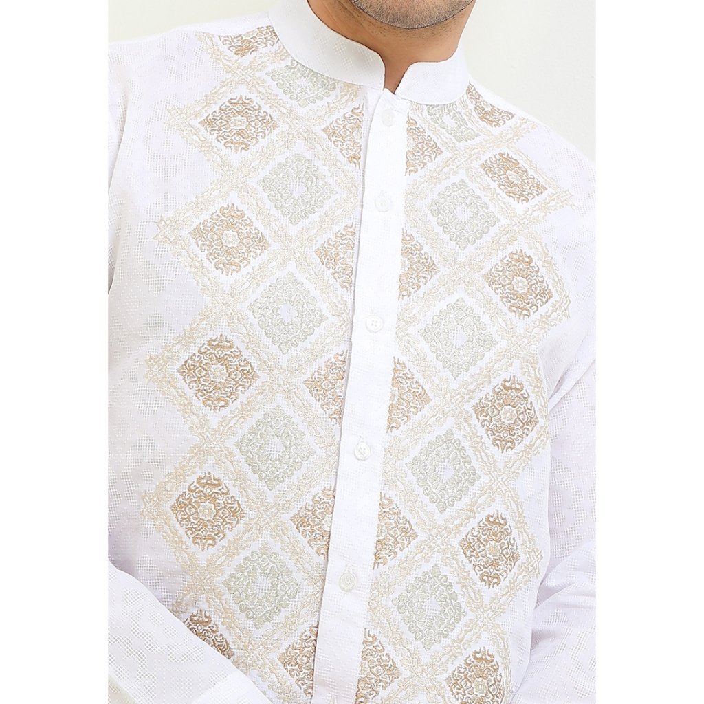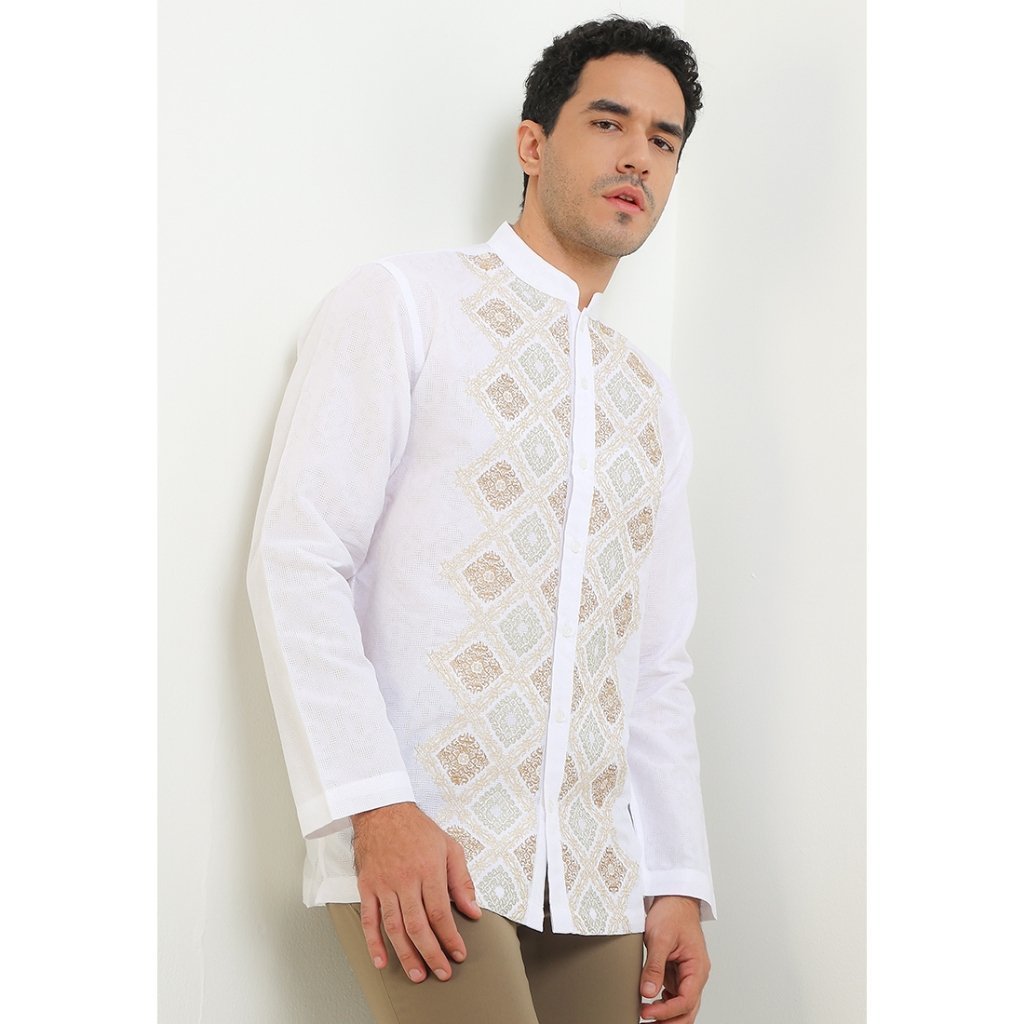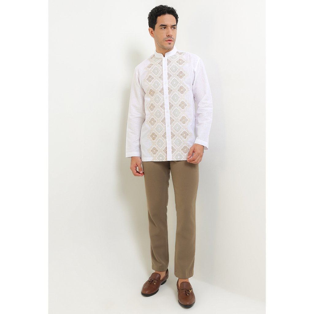 (Intresse X Sandiaga Uno Collection) Intresse Minang Gold White Short Sleeve Baju Koko