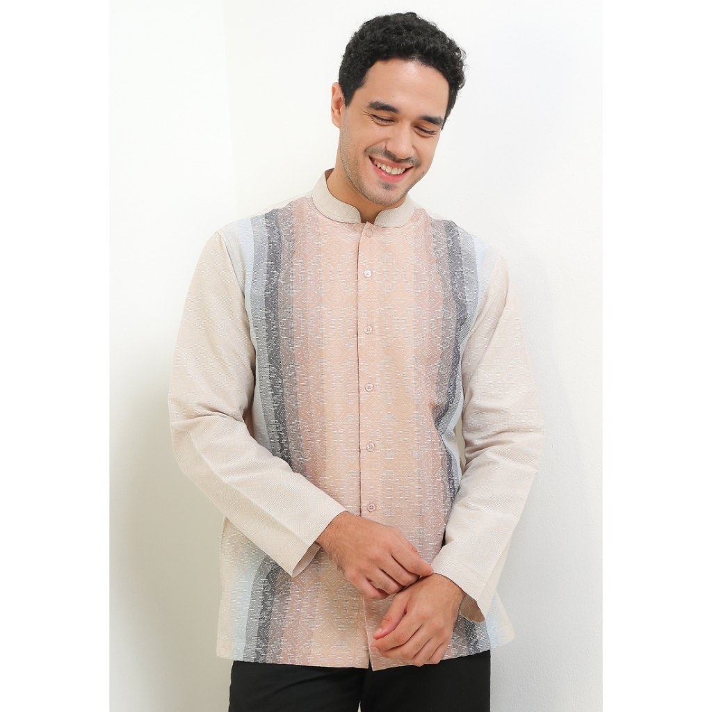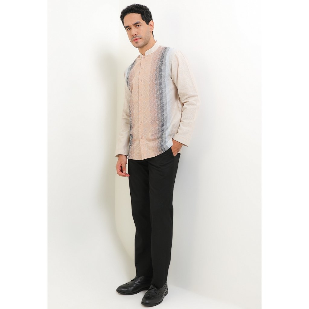 – Baju koko lengan panjang motif dobby gradasi untuk modern classy look
