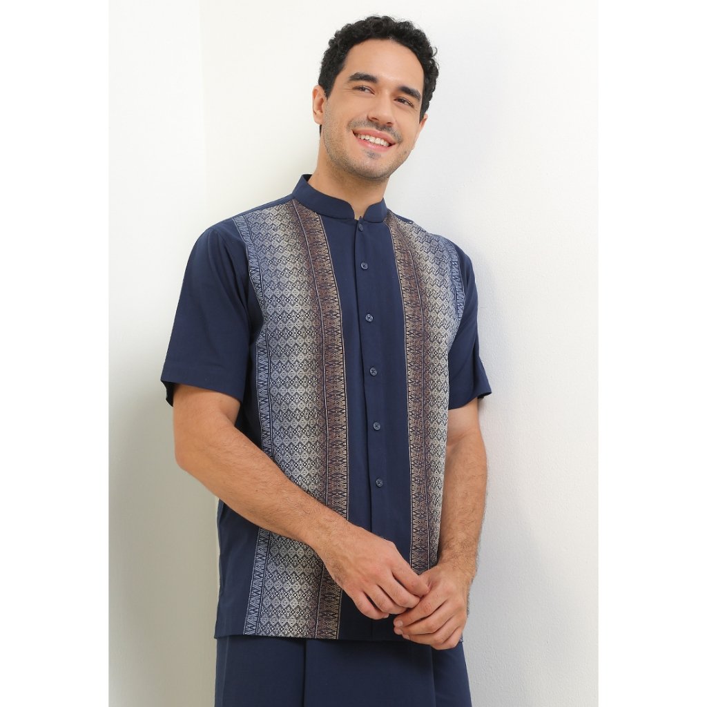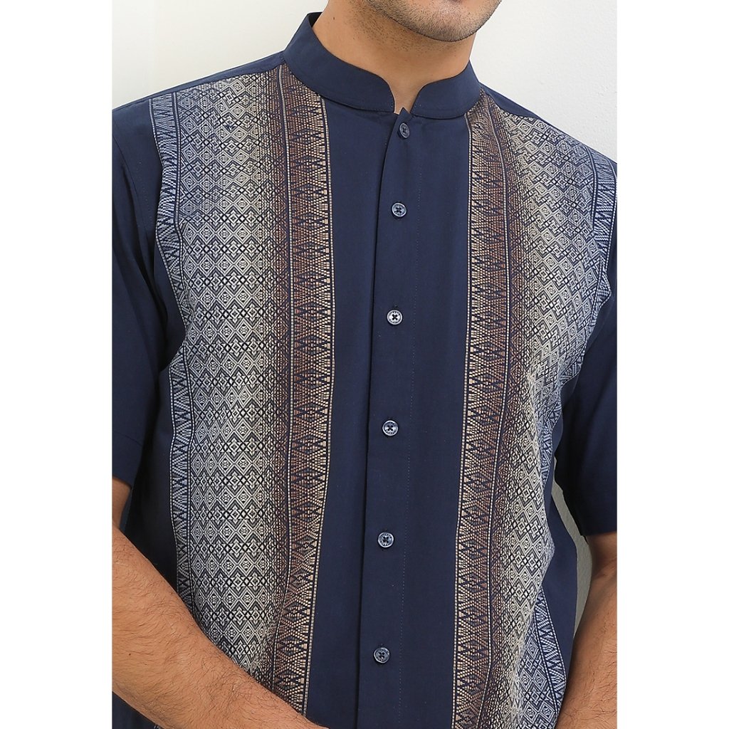 (Intresse x Sandiaga Uno Collection) Intresse Natuna Chest Navy Short Sleeve Baju Koko