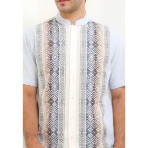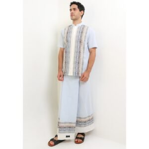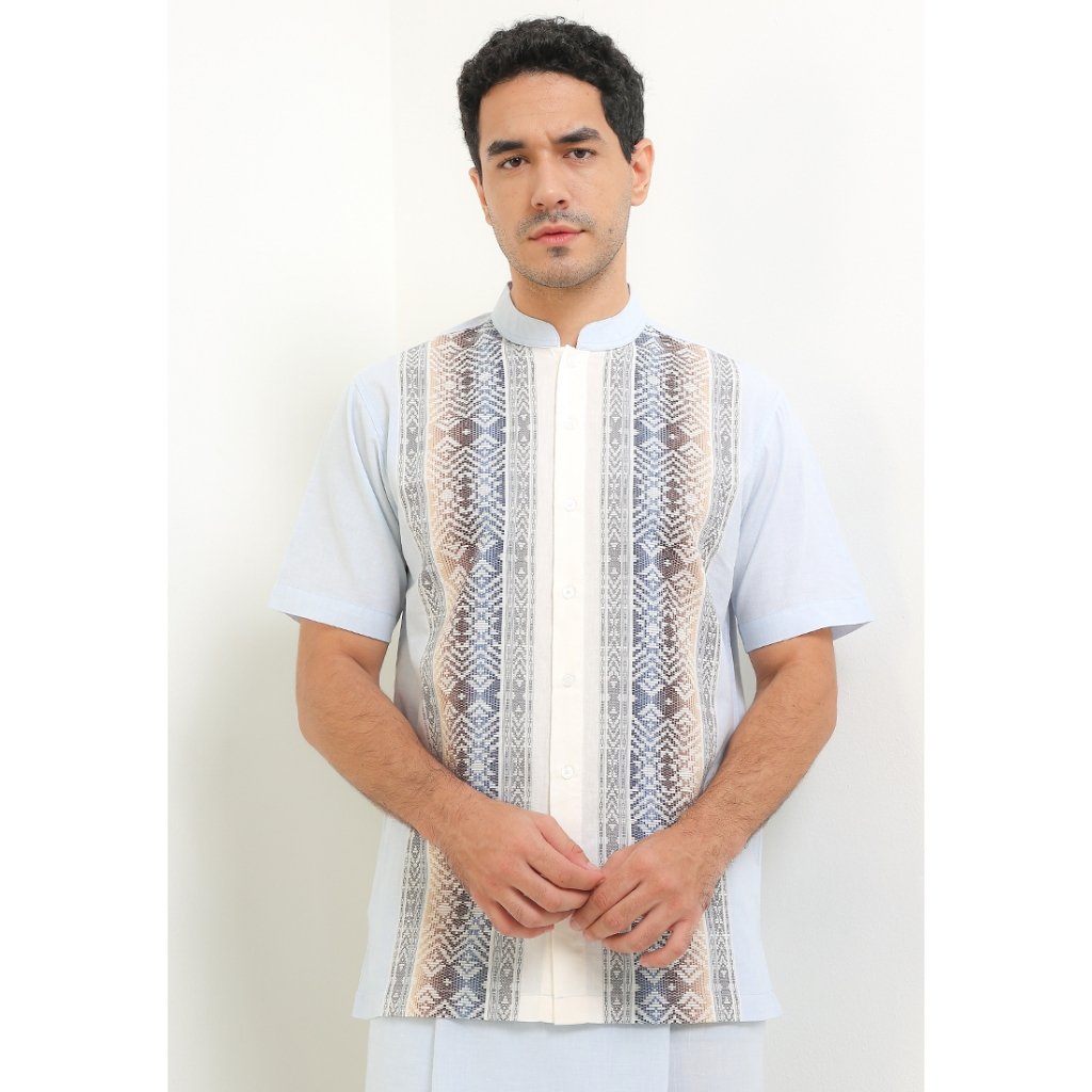 – Koko lengan pendek motif tenun bernuansa light tone dengan kesan classic ethnic